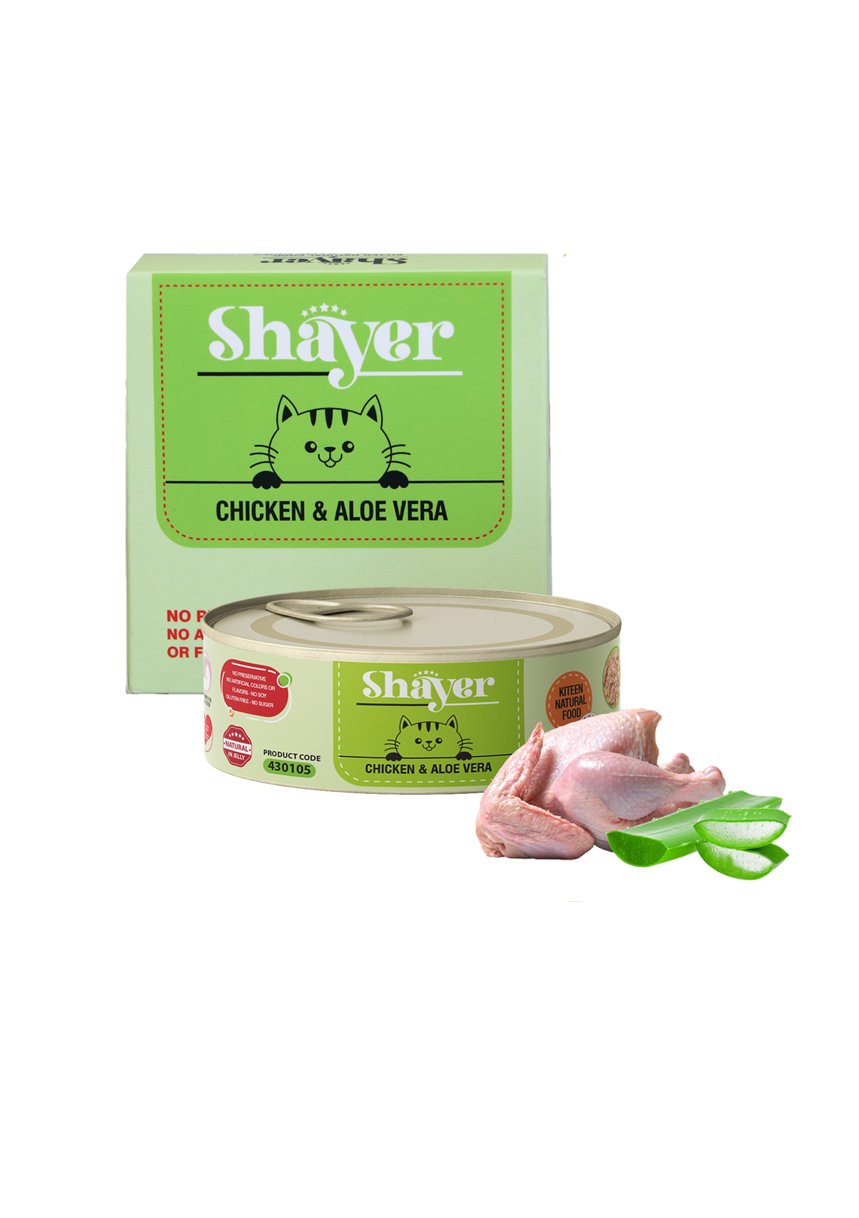 نچرال-کنسرو مرغ و آلوئه ورا در ژله کیتن 90 گرمی شایر(سبز پسته ای )