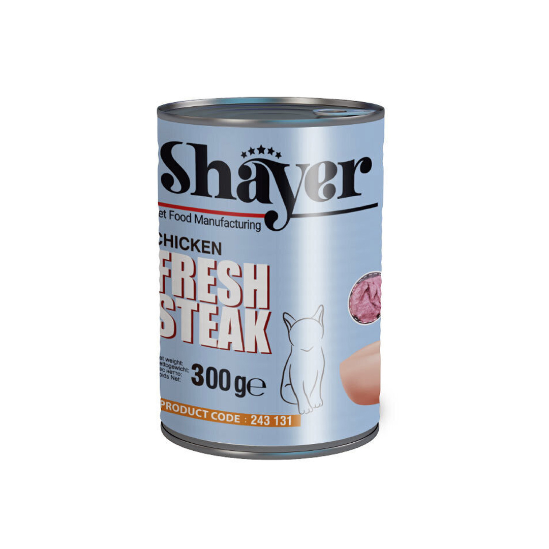 كنسرو استيك مرغ گربه 300 گرمي shayer
