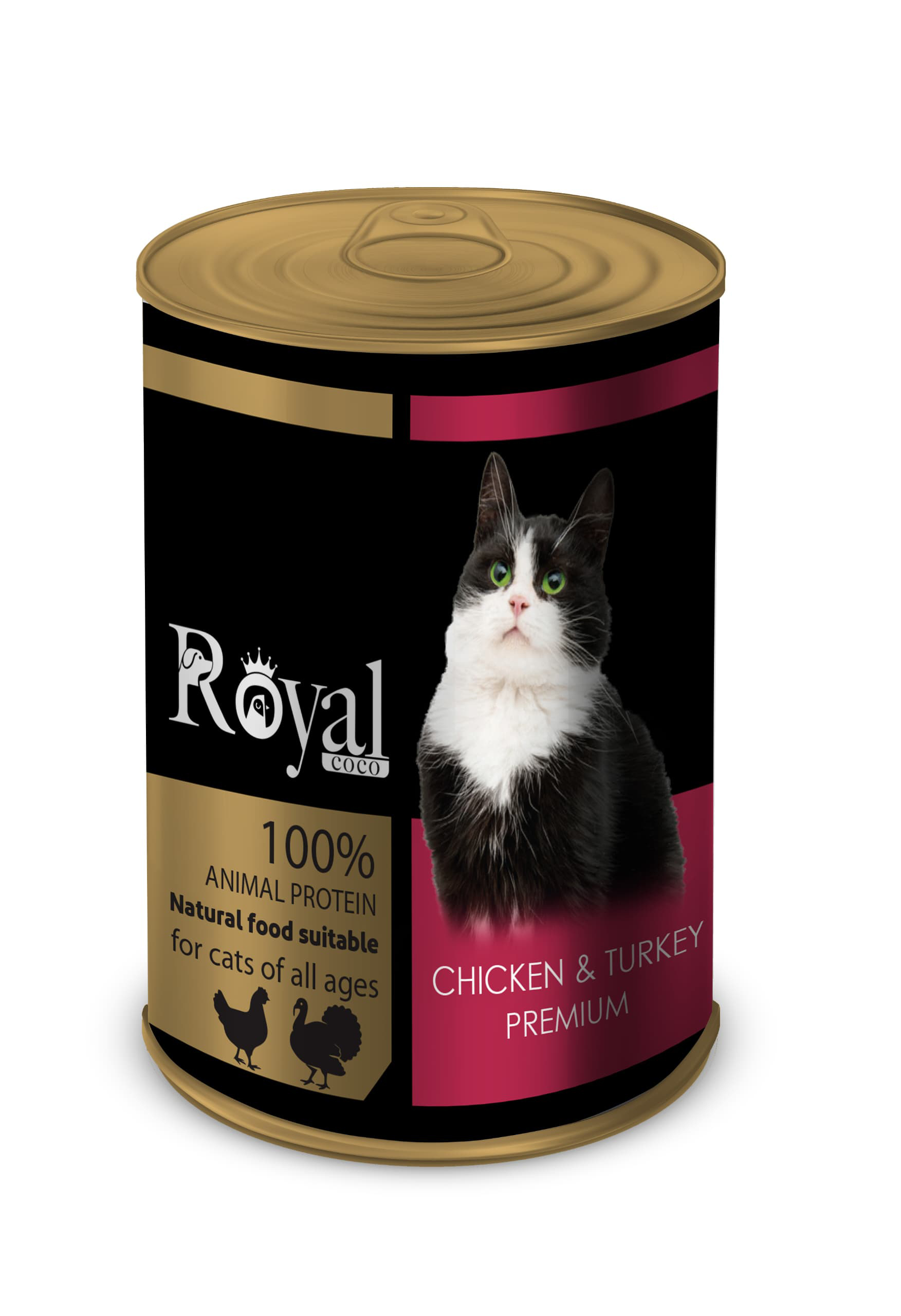 كنسرو مخصوص گربه با طعم مرغ و بوقلمون 380 گرمي Royal coco