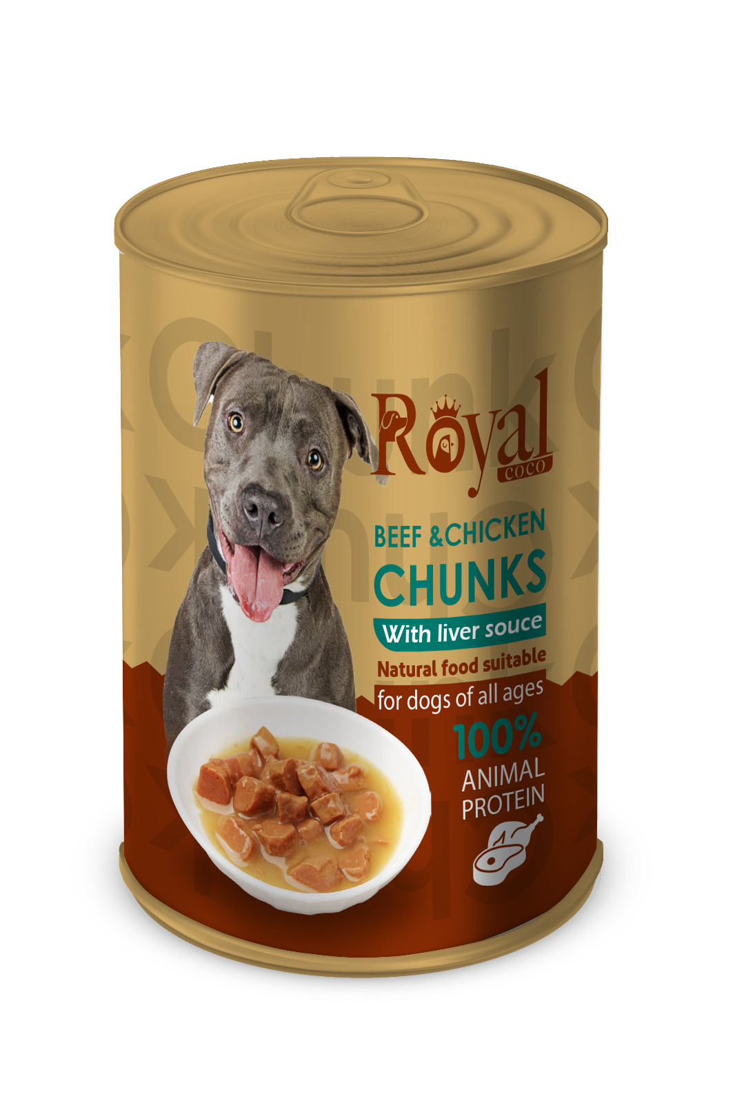 کنسرو چانک با طعم گوشت و مرغ مخصوص سگ 380گرم رویال کوکو