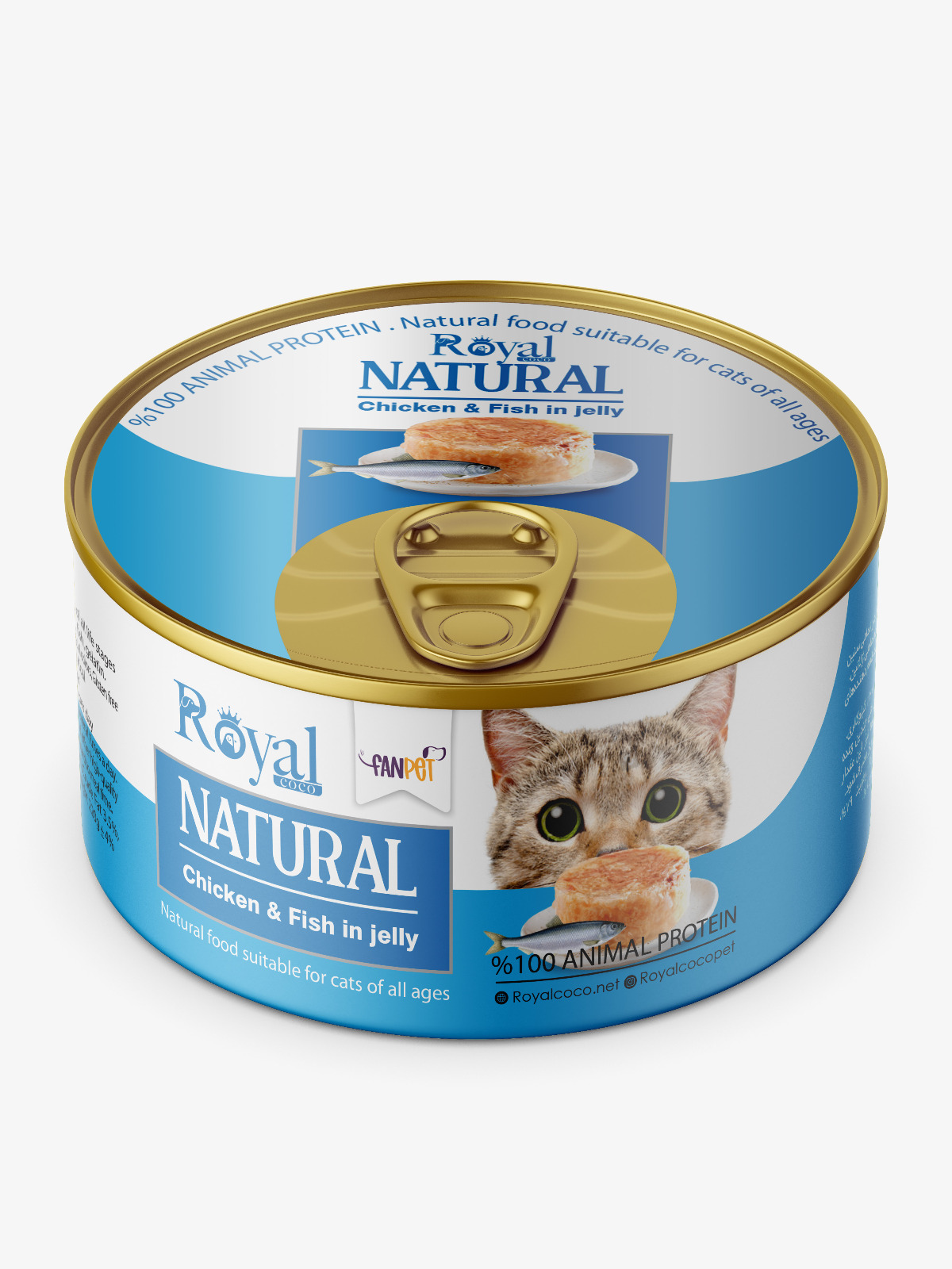 كنسرو نچرال گربه طعم مرغ و ماهي در ژله 220 گرمي Royal coco