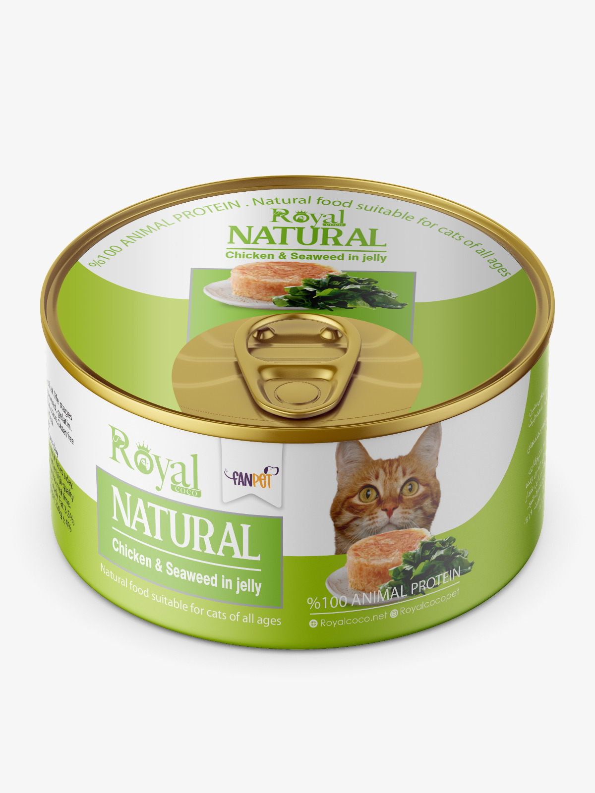 كنسرو نچرال گربه طعم مرغ و جلبك دريايي در ژله 220 گرمي Royal coco
