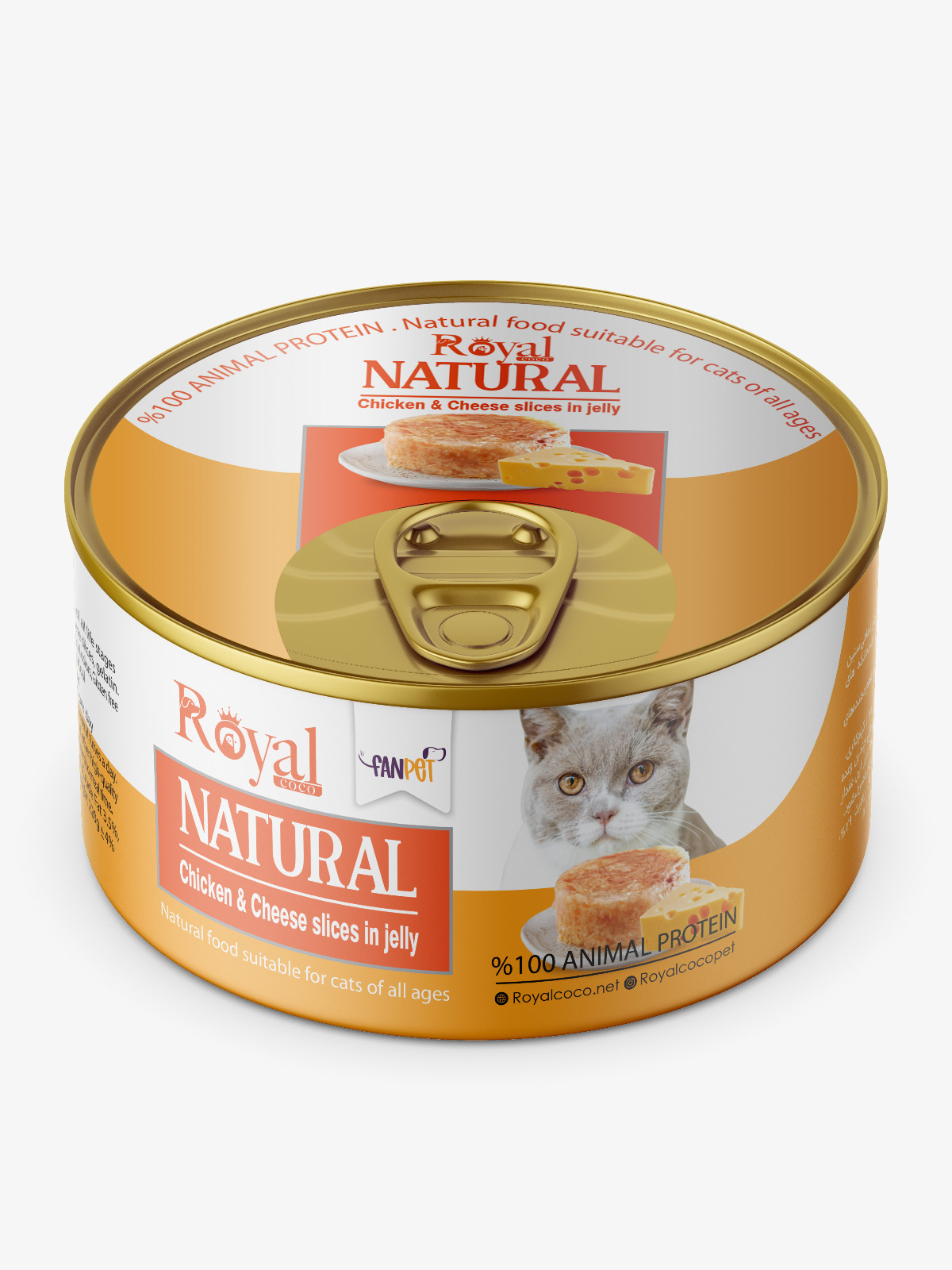 كنسرو نچرال گربه طعم مرغ و تكه هاي پنير در ژله 220 گرمي Royal coco