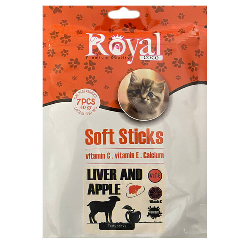 تشويقي مدادي نرم مخصوص گربه 7 عددي طعم جگر و سيب Royal coco