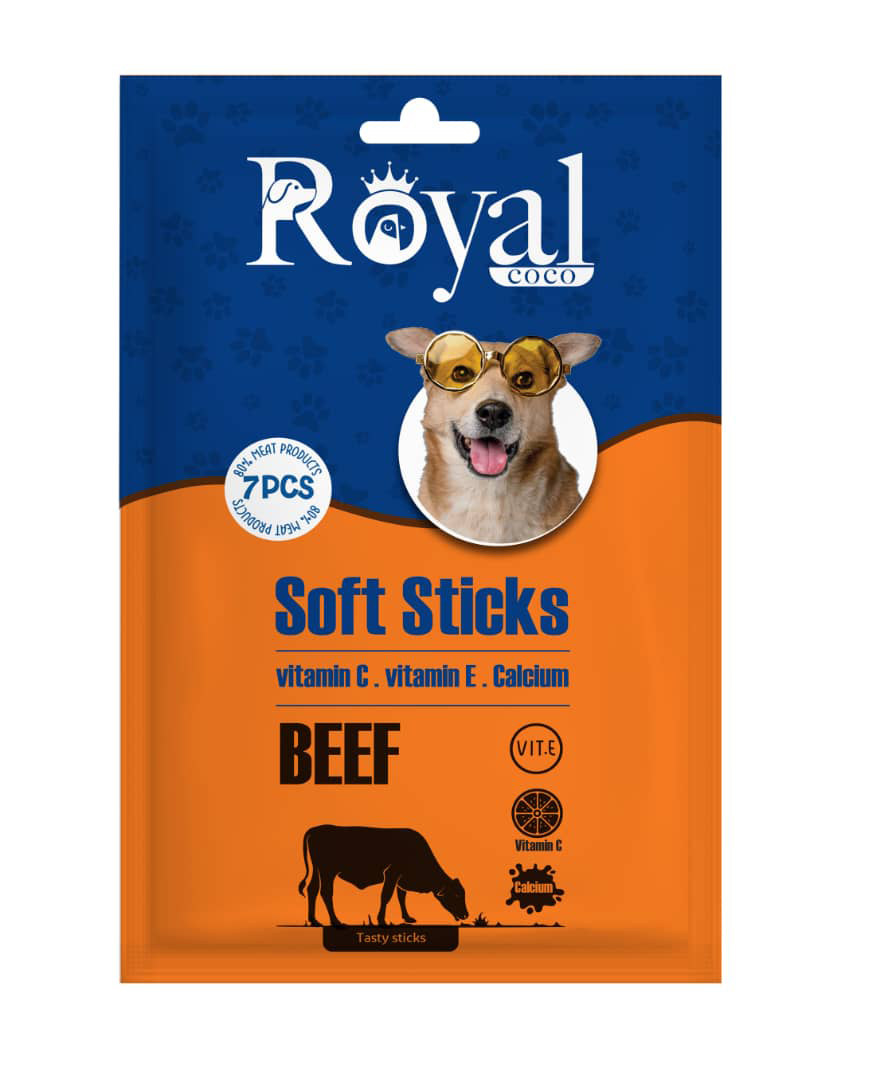تشويقي مدادي نرم مخصوص سگ 7 عددي طعم گوشت Royal coco