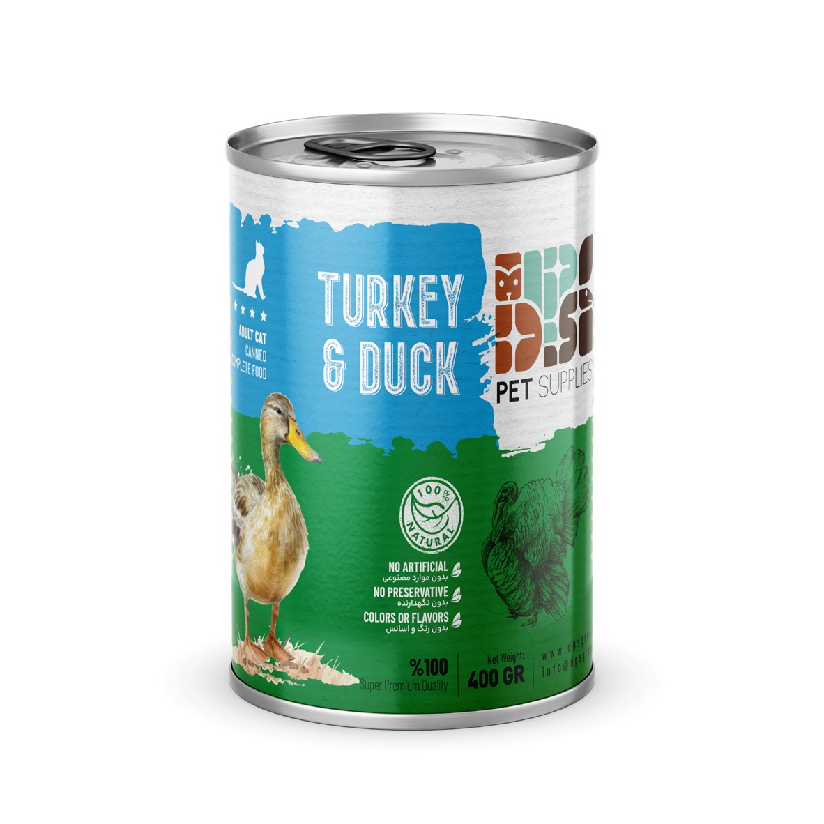 كنسرو نچرال بوقلمون و اردك گربه بالغ 400 گرمي dps