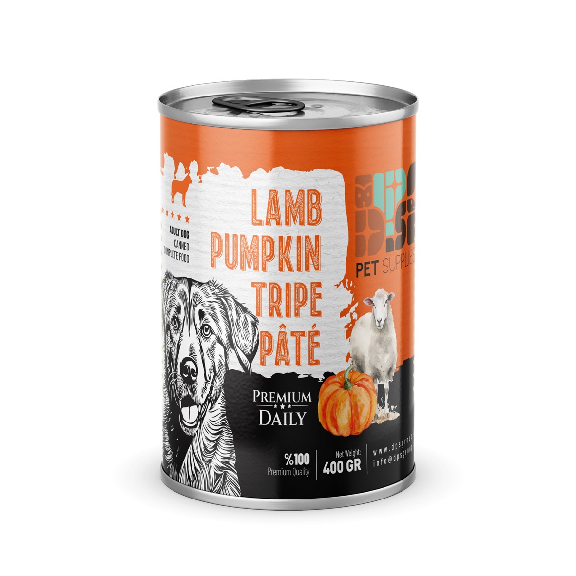 كنسرو پرميوم گوشت بره و سيرابي و كدو سگ 400 گرمي dps